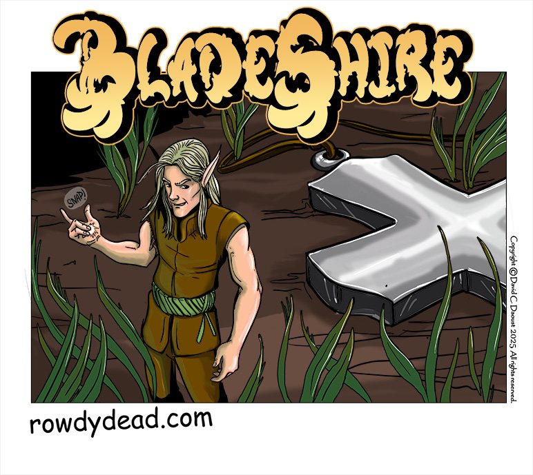 There were ways; Chut knew it. Spriggan ingenuity indeed! He’d managed to find the cross– Chantilles’ cross, that had haphazardly flown from her hand right before she took a tumble down the hole. He dragged it with him to the end of the rope, looping its strong leather strap, best he could, around the thick rope. He stood the cross up on its end and then heaved it forward. He pushed and pushed, and finally the rope budged, only an inch or two, but he only had to go about six inches to the hole.