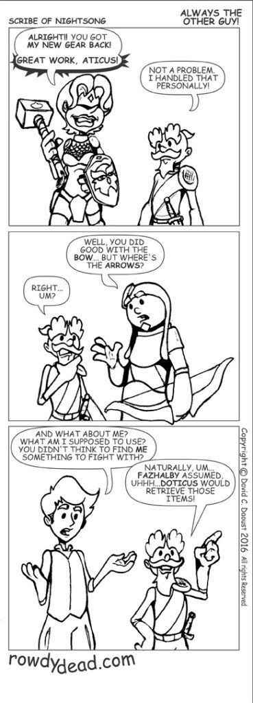 Scribe 134April 6, 2016 Home Comics NightSong Library Labyrinth of Darkness! Scribe 134 << First < Prev Next > Last >> Share to: Click to share on Facebook (Opens in new window) Facebook Click to share on X (Opens in new window) X Tags# Aticus# Horban# Oliver# Sally (Stabbitha the Stabby!)