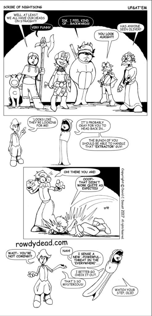 Scribe 189December 6, 2017 Home Comics NightSong Library Labyrinth of Darkness! Scribe 189 << First < Prev Next > Last >> Share to: Click to share on Facebook (Opens in new window) Facebook Click to share on X (Opens in new window) X Tags# Agro# Aticus# Bartello# Fazhalby# Hal the Halberd# Horban# Mysterel# Oliver# Sally (Stabbitha the Stabby!)