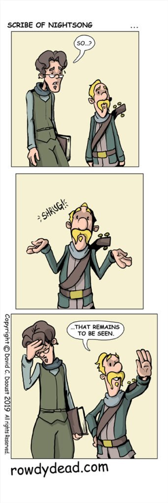 Scribe 248September 18, 2019 Home Comics NightSong Library Scribe 248 << First < Prev Next > Last >> Share to: Click to share on Facebook (Opens in new window) Facebook Click to share on X (Opens in new window) X Tags# Mordamir# Sulieradwyn Molor the Caterwauling Cat of Nightsong! (or Sully... just Sully's fine.)