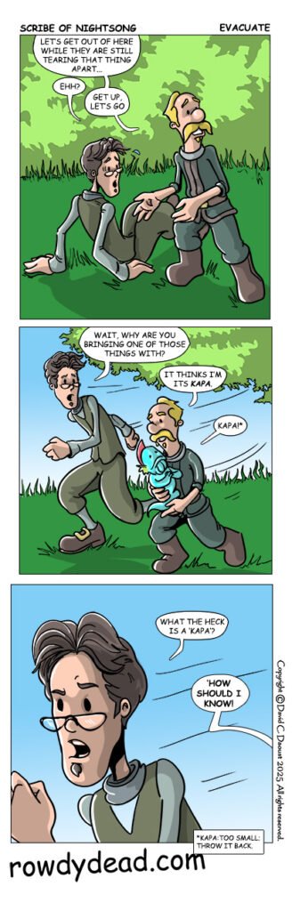 The Scribe of Nightsong– on Wednesday! Presented by Rowdydead Productions– Webcomics and serialized fiction. Stop by the site to read our comics and stories. You know, if you want.